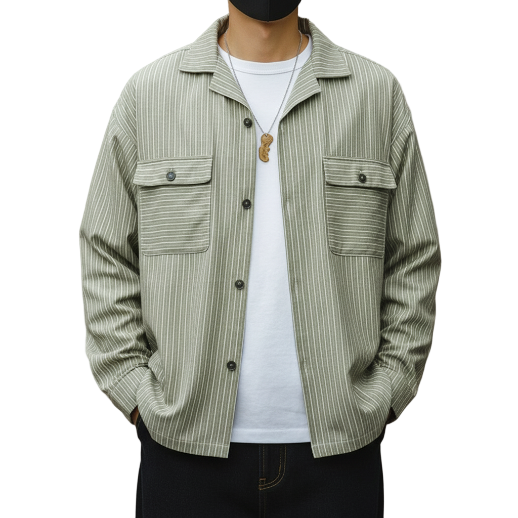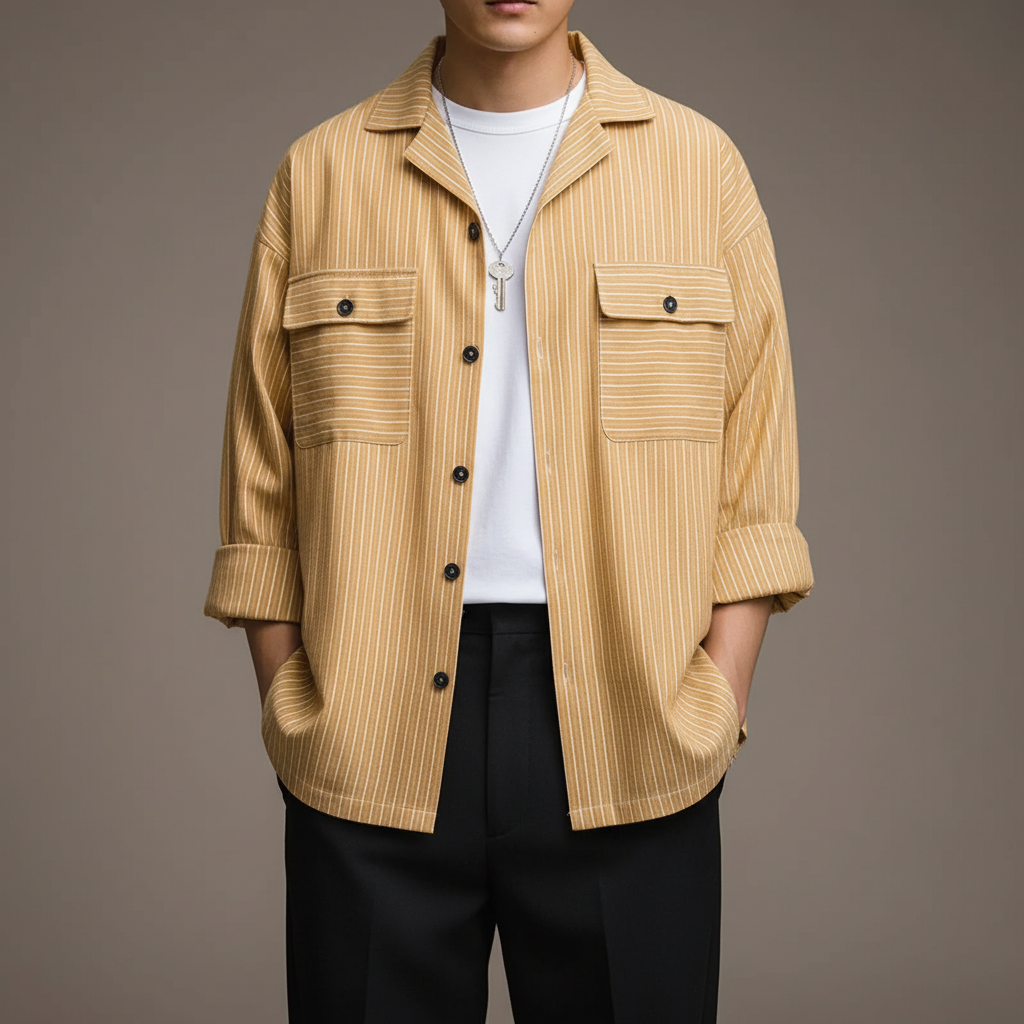 A crisp pinstripe design pairs with a vintage Cuban collar to deliver effortless sophistication. Made from a soft cotton blend, it offers relaxed structure and comfort for any setting.