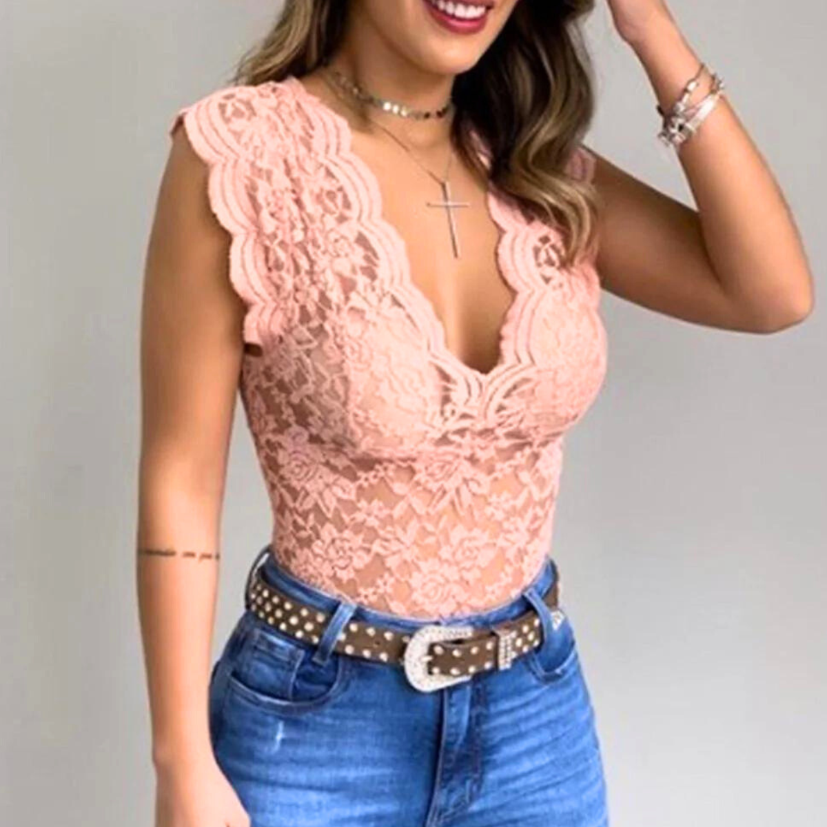 Make a bold statement in this stunning lace top, where delicate detailing meets fearless style. With its flattering fit and striking neckline, it’s your go-to piece for summer confidence and elevated edge.