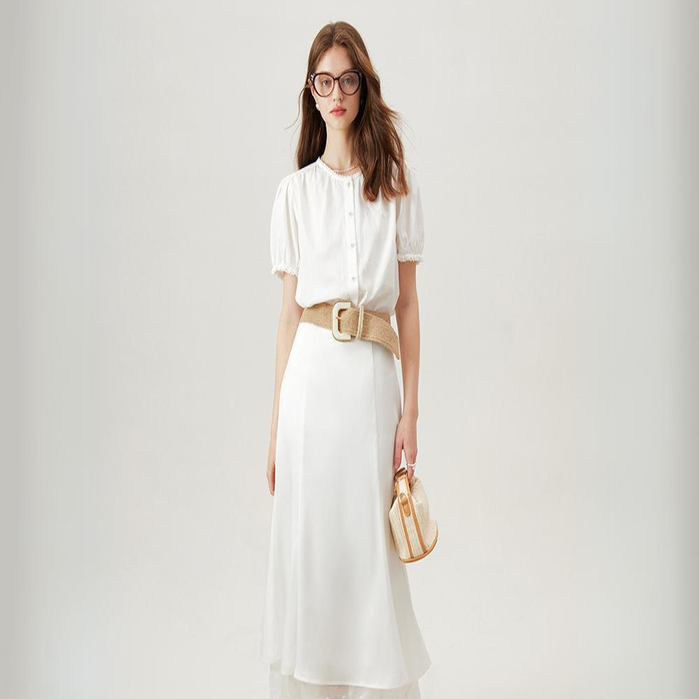 Add a touch of refined charm to your look with this airy cotton blouse, detailed with elegant lace and pearl accents. Designed for both comfort and style, it’s a standout piece for any occasion.