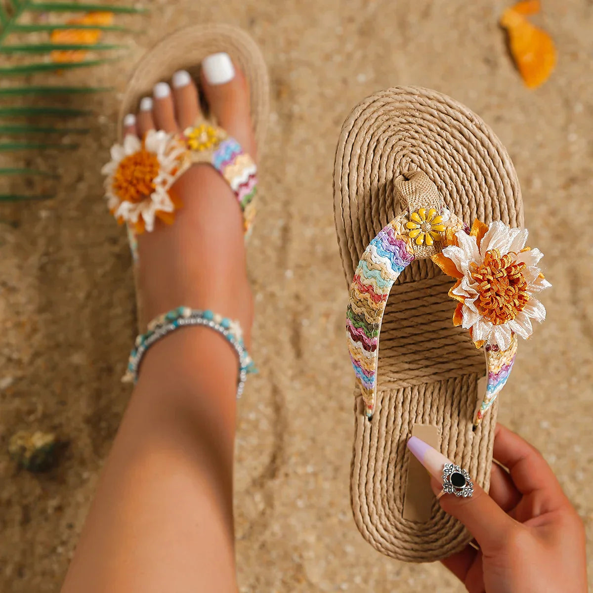 Introducing our Women's Fashion Trend Accessory Sunflower Flip Flops, designed to keep you stylish and comfortable all summer long. With an anti-slip sole and soft construction, these flats are perfect for beach days or casual outings.